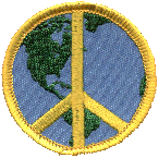 Words and images for peace...DOVE OF PEACE, ARABIC AS-SALAAM, LATIN PAX, HEBREW SHALOM, JAPANESE PEACE CRANE, RUSSIAN MIR, CHINESE HUH PING, SANSCRIT SHANTI. Words for peace in several languages surround the whole earth, in rainbow colored hearts. A symbol for unity in diversity, and peace for our planet. Fly this one proudly! Loop for a string or dowel is at the top border. Rayon Batik. 2.5' square.